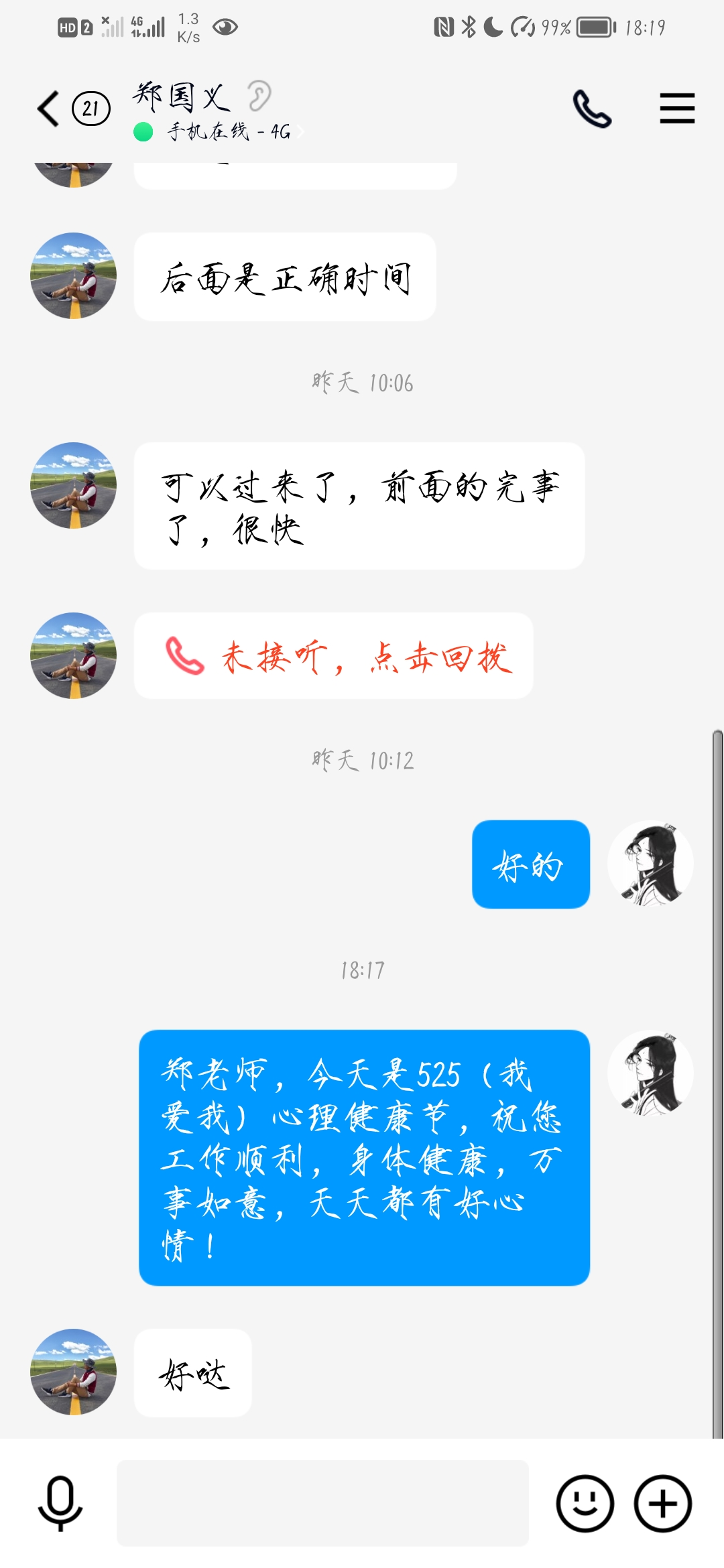 5月25日当天,计通学院面向全院学生在5月25日举办了温暖传递-—5月25日短信祝福活动,各班心理委员通过qq、微信等方式编辑信息,给辅导员、班主任、任课老师以及班上的同学发送祝福短信,提醒大家“525”这个日子的特殊含义,提醒所有人在忙碌的学习、工作中不要忘记关爱自我,了解自我,接纳自我。此次活动即可以给每个发送短信的同学和收到短信的老师和同学一份温暖的力量,又普及了心理知识,提高了大家对于心理健康的重视。