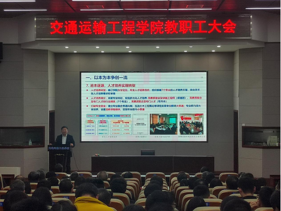 1月17日下午,交通运输工程学院在云塘校区工二B301会议室召开教职工大会,全体在职教职员工、23名离退休老同志代表参加,刘朝辉主持会议。