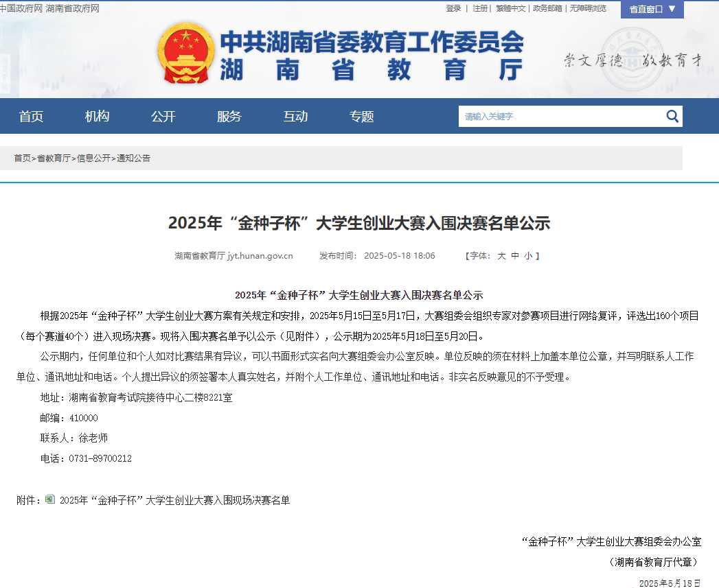 近日,2025年“金种子杯”大学生创业大赛入围现场决赛名单公示,我院共有4个项目脱颖而出,成功晋级至全省160个现场赛项目名单。这4个项目分别归属于两个不同的赛道,其中,传统产业赛道3项,优势产业赛道1项。将与清华大学、浙江大学、中南大学等众多高水平大学项目展开角逐,决赛将于本月下旬进行。