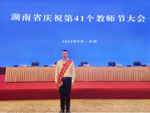 9月9日上午,湖南省庆祝第41个教师节大会在长沙举行。大会对2025年“湖南省最美教师”进行了表彰,并为十位获奖教师颁发证书。我院吕松涛教授荣获该项荣誉。