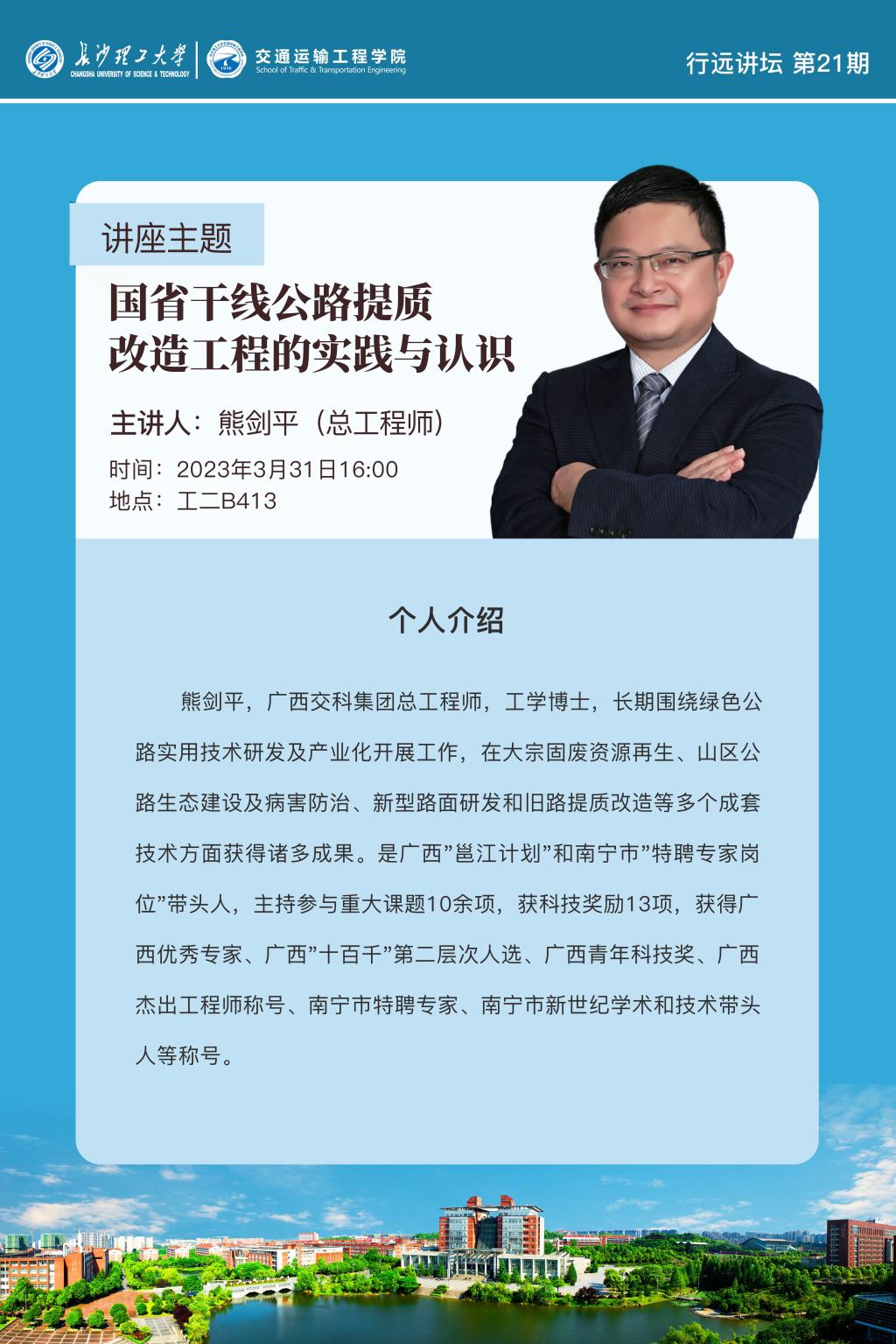 广西交科集团有限公司总工程师熊剑平来我院指导交流