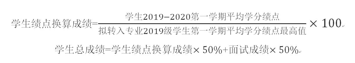 3. 学院根据学生学分绩点、专家组面试综合评价结果以及各专业当年的接收转专业人数,择优确定转入学生名单。计算方式如下: