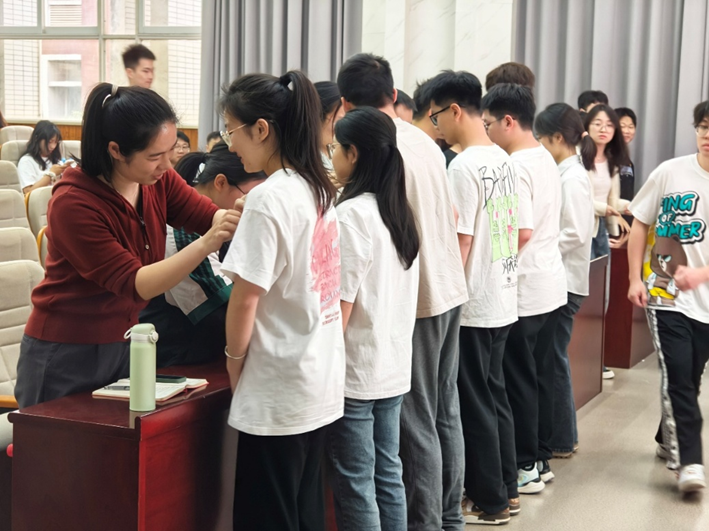 4月17日下午,交通学院分党校第三十一期中共预备党员授徽仪式暨培训班开班仪式在工科二号楼交通科技报告厅举行。分党校秘书肖敏强、研究生辅导员李文博、各学生党支部委员代表及第31期全体预备党员学员参加。