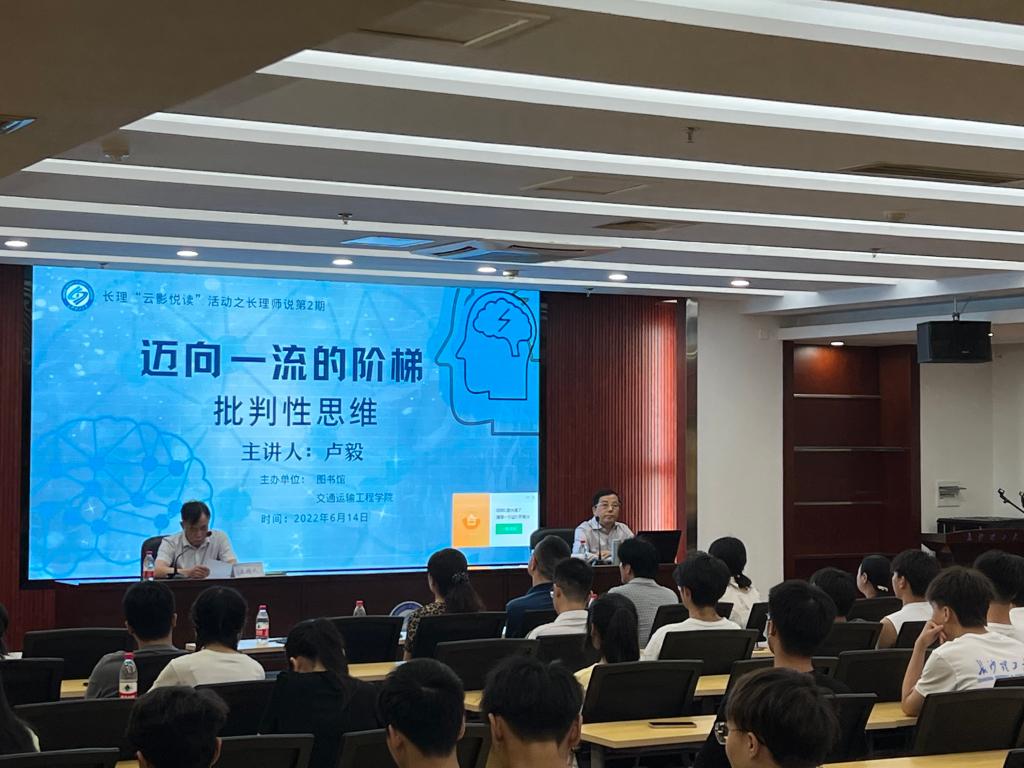 6月14日下午,交通学院共计70余名学生参加了“迈向一流的阶梯—批判性思维”主题讲座。此次讲座由开云kaiyun体育图书馆主办,同时也是长理“云影悦读”活动之长理师说的第二期,交通学院教授卢毅主讲。