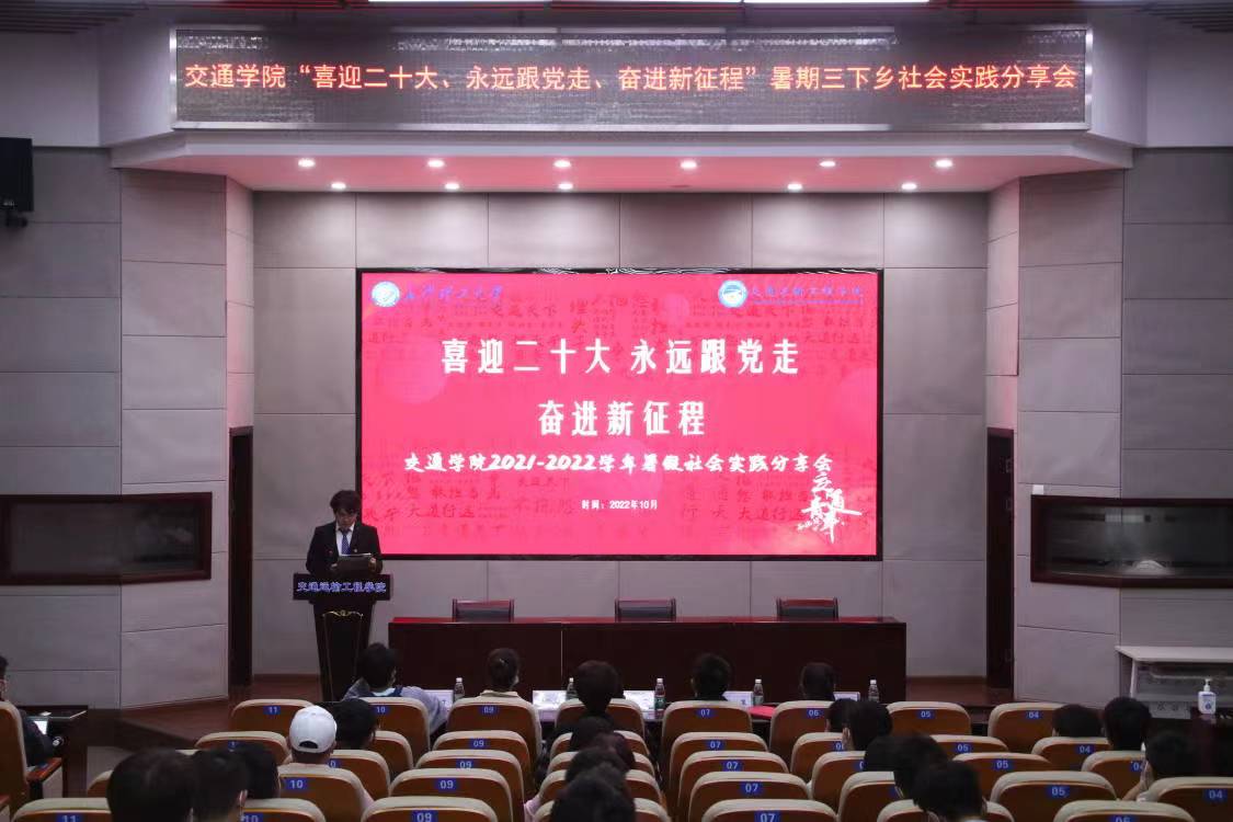 10月11日晚上,交通学院于云塘校区工科二号楼B-301举行了“永远跟党走,奋进新时代”为主题的2022年暑期三下乡社会实践分享会。本次会议由交通学院团委组织部成员康赵坤主持,交通学院党委副书记涂道勇、交通学院团委书记彭笠出席会议,交通学院所有暑期三下乡社会实践学生团队参加。本次暑期三下乡社会实践共计1085个团队、1600余人,提交了近1200份调查报告,共计250万余字。