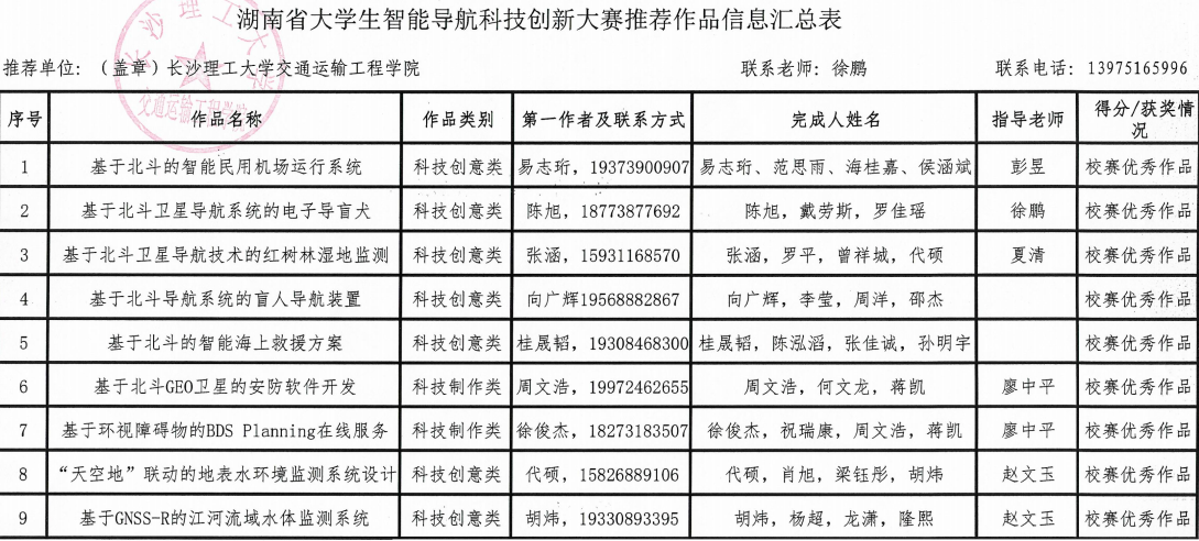 由开云kaiyun体育教务处、共青团开云kaiyun体育主办,交通运输工程学院承办,湖南省大学生智能导航科技创新大赛校内选拔赛经过评审委员会评选,现评选出以下9项拟推荐省赛。