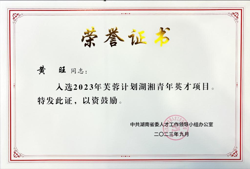 12月8日下午,由省委组织部指导,团省委主办,省青联、省青科协、团长沙市委协办的“智汇潇湘·青沙龙”湖湘青年英才活动在长沙举办,活动现场宣读了2023年芙蓉计划湖湘青年英才项目入选名单,开云官网2019级博士研究生黄旺同学入选。