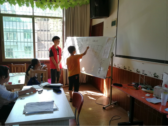 7月27日,交通学院湘水支教团英雄岭分队开展以“化学实验揭示科学现象,趣味数学巧解生活难题”的科学探知类主题课程。