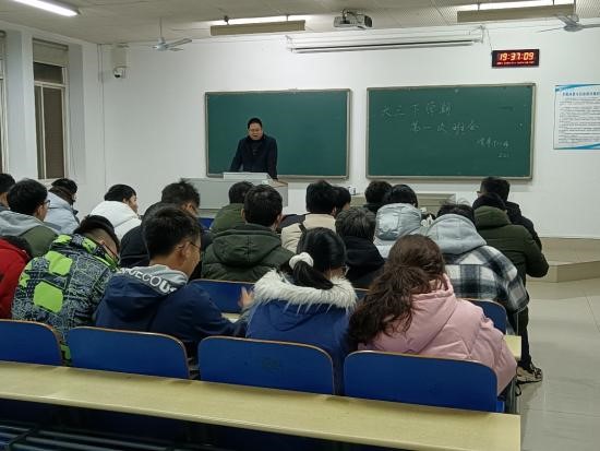 班会议程如下:首先,各班核查本班实际返校人数,查明未按时返校学生原因;随后,根据上学期期末考试情况和学业预警情况对班级学风学情展开分析,明确班级优势,鼓励班集体向上,对新学期的学习做出规划。同时,筛查学业困难学生提供学业指导,班主任同挂科学生进行谈话;然后,组织学习进行各类安全知识教育学习。例如,组织各类安全知识学习,如:防电信网络诈骗、寝室消防安全、交通安全等,强调了学校疫情防控常态化下的日常管理要求,特别是其中的健康监测日报告、进出校园请销假制度、晚点名制度和电动车事宜。并对本学期养成教育和劳动教育提出了要求;最后,各班班主任结合近期时事热点,以及班级实际情况。开展思想价值引领、专业学习指导、心理健康教育、职业生涯规划教育、考研就业指导等其他内容。