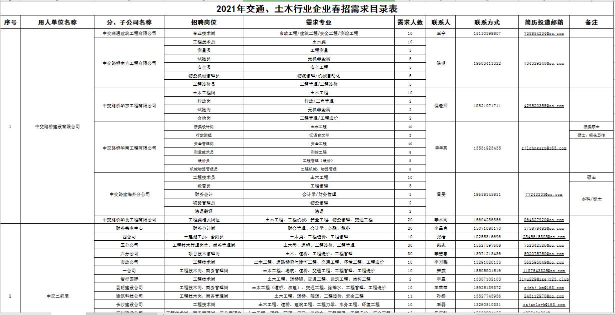 1 交通、土木行业部分企业2021年春招需求目录