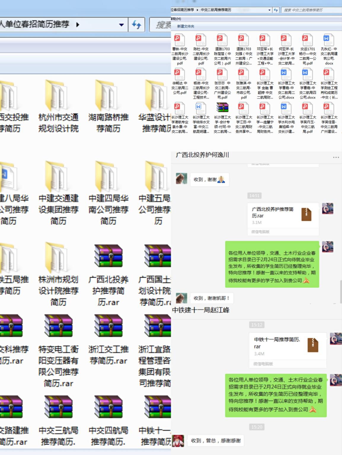 此次发布的春招需求目录,共包含企业(含二级分子公司)68家,涉及岗位超过1800个。其中需求目录企业多以中国交建、中国铁建、广西北投、广西交投、湖南路桥、浙江交工等大型央企、国企为主,也包含了苏交科集团等上市科研、设计企业;岗位需求不仅量大,且种类齐全,既有项目管理等工程技术类岗位,亦有工程造价、人力资源等商务财经和综合管理类岗位。同时,此次的需求目录中附上了企业HR的联系方式、邮箱等信息,学生既可以选择自行投递简历,也可以将简历发往学院,再由学院向意向单位逐一推荐。总体而言,需求目录中企业、岗位可选择面广,毕业生意向度高。据统计,需求目录表发布至今,共向企业推荐简历205人次,超30人达成签约意向。