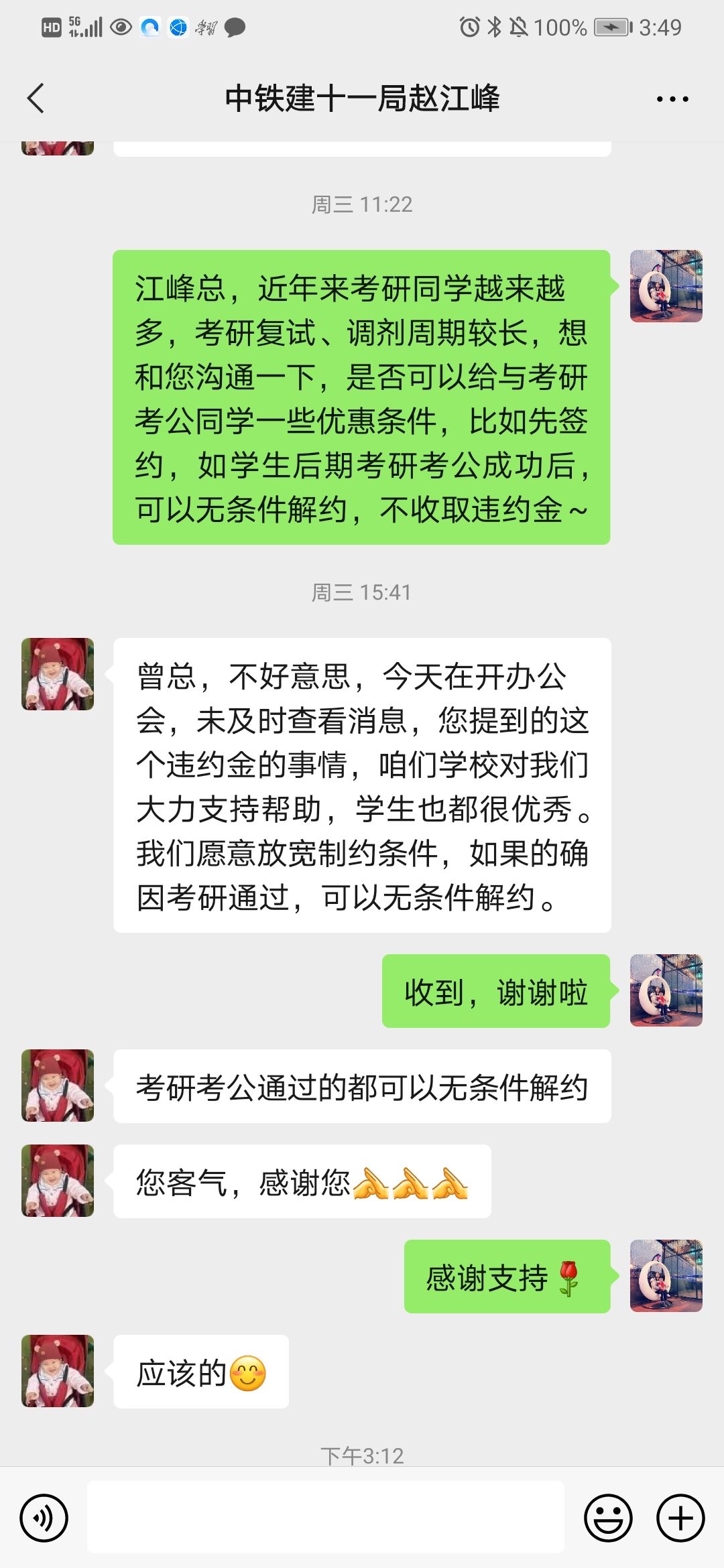 3 与企业达成“绿色就业通道”协议     图4 考研复试“帮帮团”答疑