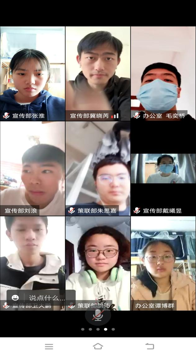 4月3日早10点15分,交通学院心理学研会召开“清音幽韵,可慰风尘”微小说活动动员大会,大会以线上形式召开,本次会议由组织部部长刘昕瑞主持,会议就本次线上微小说活动的具体安排,各部门分工以及策划案的可行性、合理性展开讨论。