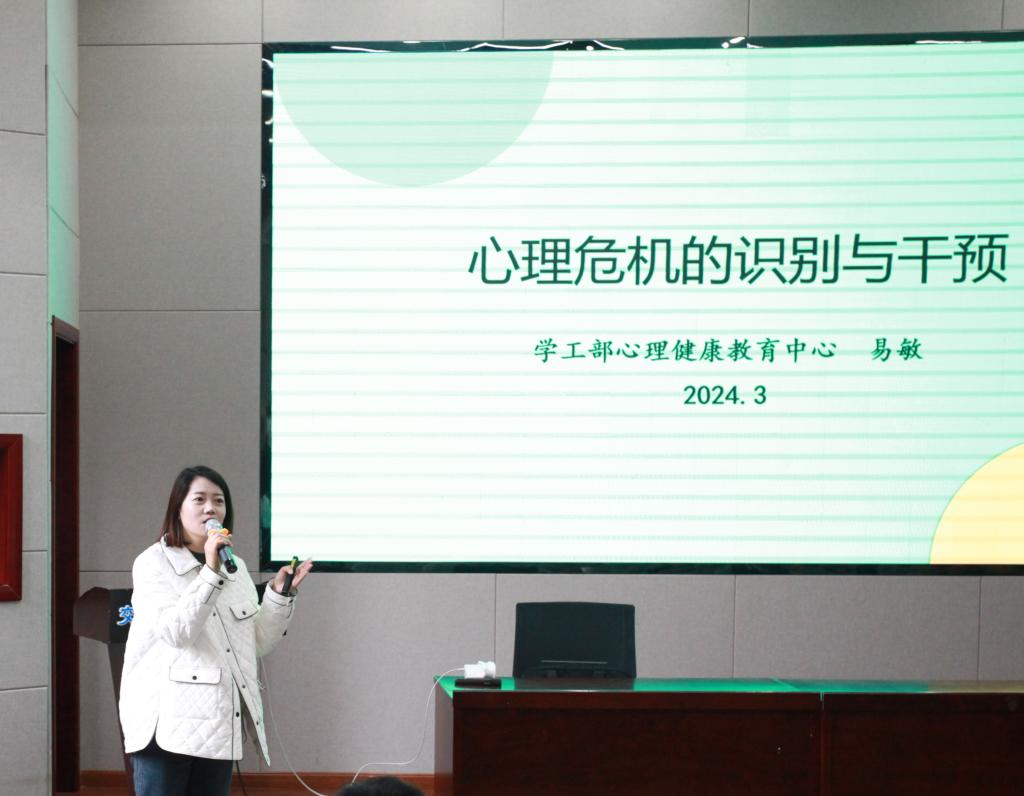 3月19日下午,交通学院在工二B-301开展2024年度班主任及导师心理健康知识培训,学工部心理健康教育中心主任易敏作“心理危机的识别与干预”的报告。