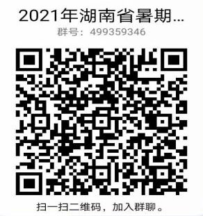 3.报名方式:请下载附件表格《湖南省研究生暑期学校学员报名表》填写并提交至组委会邮箱:sqxxcslg2020@163.com,邮件主题按:“暑期学校申请人姓名XXX+XXX大学”的格式填写。同时为了提供更好的咨询服务,请有意申报的同学扫码入群: