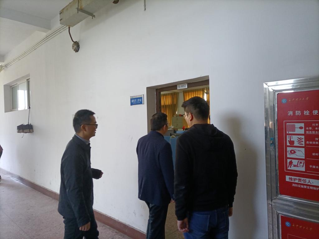 11月10日下午,交通学院党委副书记涂道勇,实验室老师郭震、潘勤学,研究生辅导员彭怡峰带领党员志愿者服务队对所有研究生工作室进行检查。