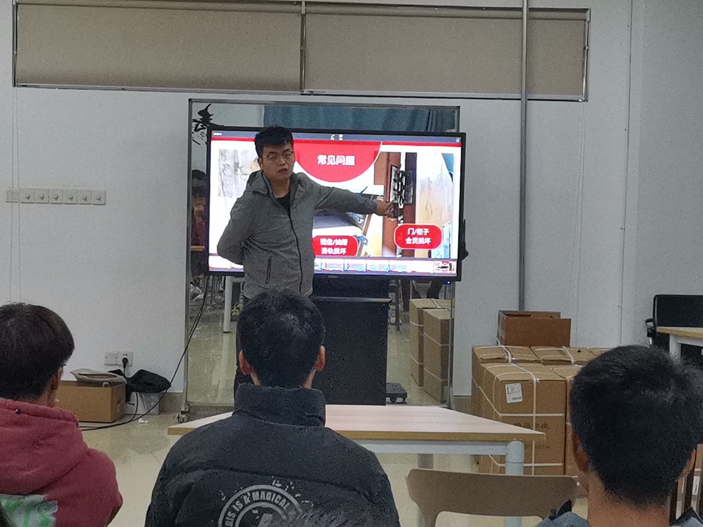最后,石现润为义务维修队成员进行业务培训。他指出,当前学生宿舍较常见损坏物有阳台/浴室插销、键盘/抽屉滑轨、门/柜子合页、浴室花酒、把手、桌椅等,并对插销、滑轨、合页、花洒、把手的更换安装步骤以及损坏桌椅的维修方法进行了详细讲解。