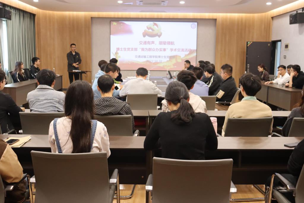 10月30日下午,开云kaiyun体育交通学院“交通有声,朋辈领航”之“我为群众办实事”活动在云塘校区公路工程实验中心开展。现场,博士生党支部精心准备了学术“大礼包”,吸引了众多博士和硕士参加。