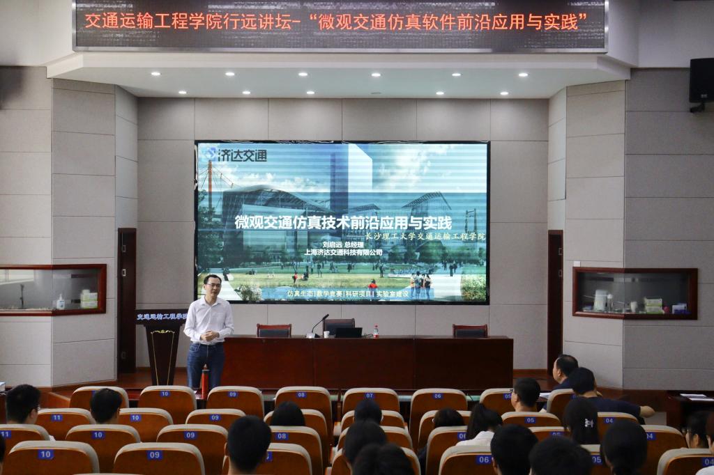 4月20日上午10:00,交通学院邀请同济大学刘启远博士主讲,于工科二号楼B-301举办主题为“微观交通仿真软件前沿应用与实践”的学术讲座,刘启远博士毕业于同济大学交通学院交通信息工程与控制专业,同年创立上海济达交通科技有限公司,商业化运营目前唯一国产微观交通仿真软件TESS-NG。交通学院5名老师及100余名研究生参加此次讲座。