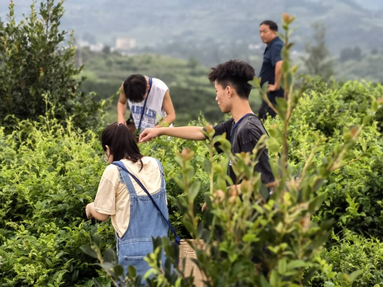 在夏日炎炎里,莓茶种植大户兼立烈村村秘书刘运国对团队的到来表示欢迎,他向团队成员介绍了莓茶产业园的基本情况,及近几年莓茶产业的发展。团队在莓茶基地品尝了茶的甘甜,更懂得了制茶的可贵。在刘运国的带领下,队员们积极学习“林下套种”技术,领取器具,整装待发,有序进行莓茶采摘,收获颇丰。