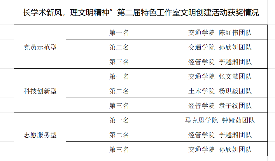 本次活动共有15个作品参与了答辩环节,参赛者们通过PPT分别展现了研究生在学术、党团组织和社会实践三个方面的全面素养和发展潜力,凭借各自工作室的独特亮点,给观众留下了深刻印象。随后由老师现场提问,进行两分钟的现场答辩。经过现场评委老师的打分与研究生代表的投票,评选出了各类型团队的前三名。获奖名单如下: