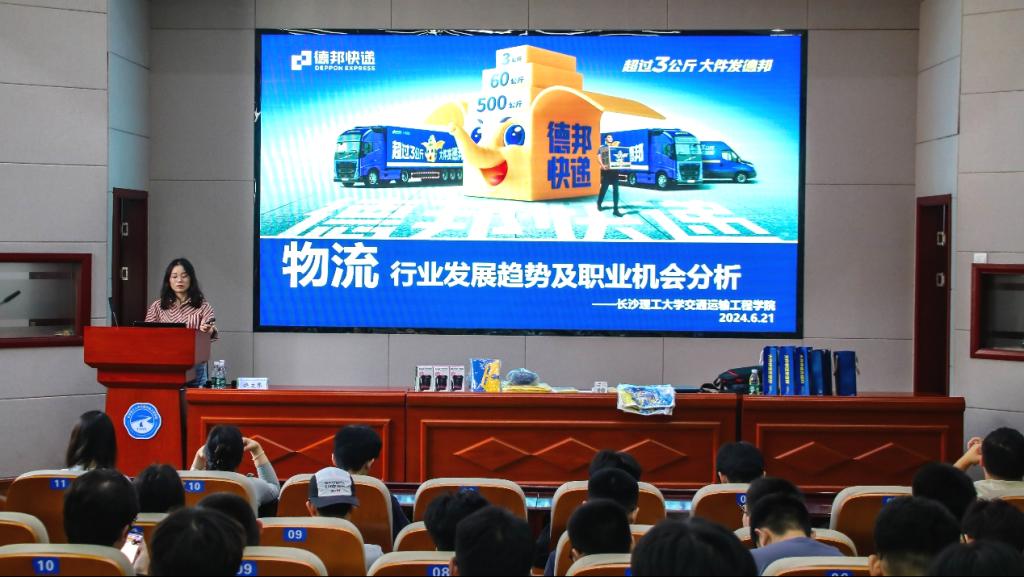 6月21日,开云kaiyun体育交通学院于云塘校区工科二号楼B301报告厅举办物流行业发展趋势及职业发展机会报告会。特邀德邦快递人才发展部高级总监饶文琴担任主讲人,交通学院就业专干李特超出席,交通学院80余名交通运输、物流工程专业学生参加会议。
