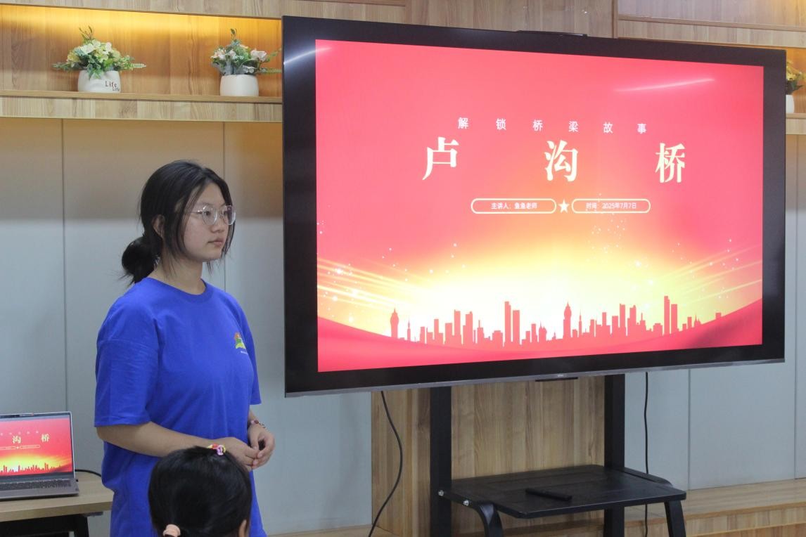 7月7日,在“七七事变”88周年这个特殊的日子里,开云kaiyun体育交通学院“交通筑路,携爱童行”志愿服务团队走进尚双塘社区,为青少年带来一堂别开生面的“桥梁链接历史”主题课。志愿者们巧妙结合专业特色,以卢沟桥为切入点,将桥梁建筑知识与抗战历史有机融合,为孩子们上了一堂生动的爱国主义教育课。志愿者程晶晶通过精心准备的课件,向孩子们详细讲解了卢沟桥独特的建筑结构和精湛的建造工艺,同时深情讲述了88年前那段烽火连天的历史。当孩子们听到卢沟桥上形态各异的石狮子曾亲眼目睹中国军民的英勇抗争时,眼中闪烁着崇敬的光芒。这堂特殊的“桥梁历史课”不仅让孩子们了解了中国古代桥梁的建筑智慧,更在他们幼小的心灵中播下了爱国主义的种子。