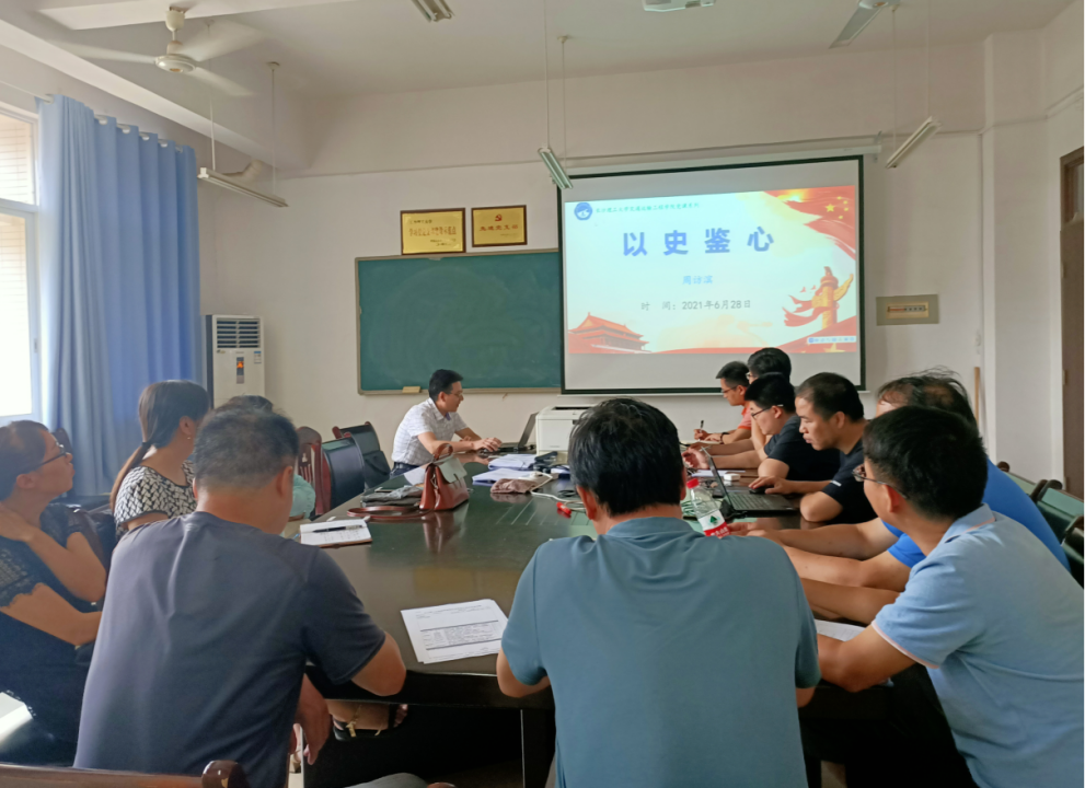 7月6日下午,测绘工程系党支部党员在工二B501集中上党课,由周访滨副院长讲授“以史鉴心”专题党课,支部书记徐鹏主持,全体党员教师参加。