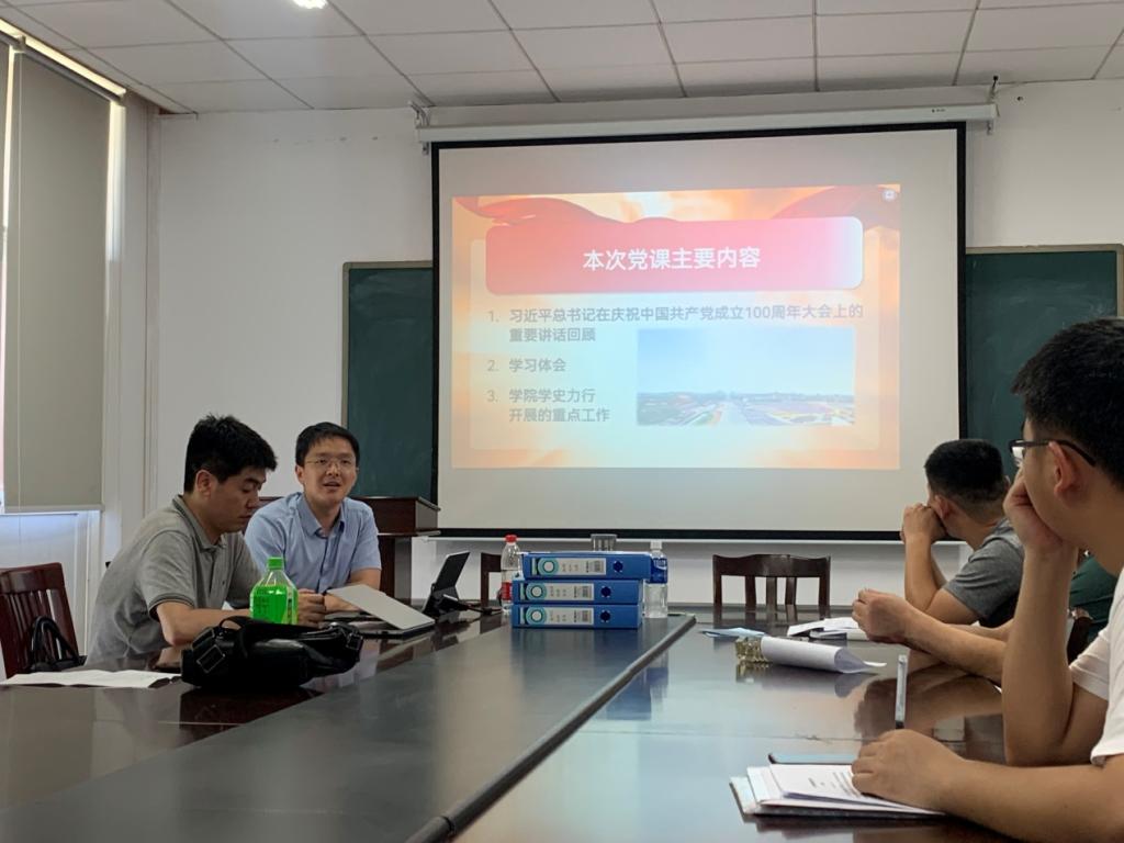 首先由张锐副院长为全体党员同志做了习近平总书记“七一”重要讲话要点回顾、学院党支部开展党史学习的相关重点工作的解读,以及张院长本人对党史学习的个人体会。结合自身的党史学习以及工作经历,张院长讲述了身为教师党员如何从习近平总书记的讲话中以及党史学习中领会教师党员个人如何实现党员价值的精髓,应发挥党员的先锋模范作用,增强党性、严于律己、团结同事、关爱学生、立足岗位做好本职教育科研工作。大家对张院长的讲话表示高度赞同。
