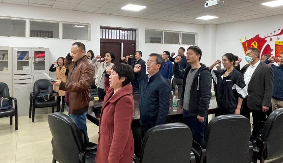宣誓仪式在庄严的《国际歌》中拉开序幕。杨文安书记宣读了《关于发展新党员郑树荣同志的决定》。郑树荣老师面对鲜红的党旗握紧右拳,庄严宣誓,向党组织表达自己坚定的决心和不变的信念,全体老党员重温了入党誓词。