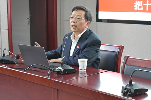 报告会上,刘国华教授从“中华民族伟大复兴的冲锋号角、写好中国高等教育的奋进之笔”两个方面深入浅出、形象生动的为参会人员阐述了党的十九大精神内涵,就如何学懂弄通做实党的十九大精神进行详细讲解。刘教授对“新成就,新使命,新思想,新征程”做出总结,也从党的自身建设,新的伟大工程,新任务以及新方略等方面阐述了其独特见解,并就中国的伟大事业和历史变革以及重新划定历史方位和社会的转型、矛盾的转化等方面进行分析。