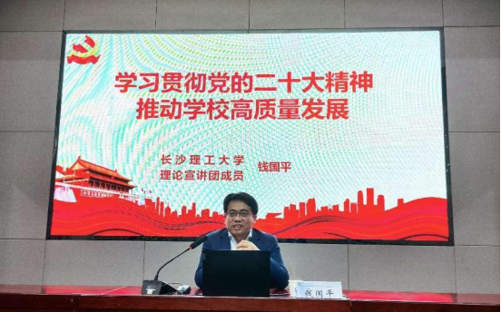 钱国平作了题为《学习贯彻党的二十大精神,推动学校高质量发展》的宣讲报告,报告从全面领会党的二十大主题及主要成果、深刻认识过去五年工作和新时代十年伟大变革、不断开辟马克思主义中国化时代化新境界、深入学习了解中国式现代化、全面建设社会主义现代化国家的目标任务、坚持党的全面领导和全面从严治党、应对风险挑战、坚定不移地办好人民满意的大学等8个方面对党的二十大报告进行详细讲解。报告脉络清晰,切合实际讲授生动,大家受益颇丰。