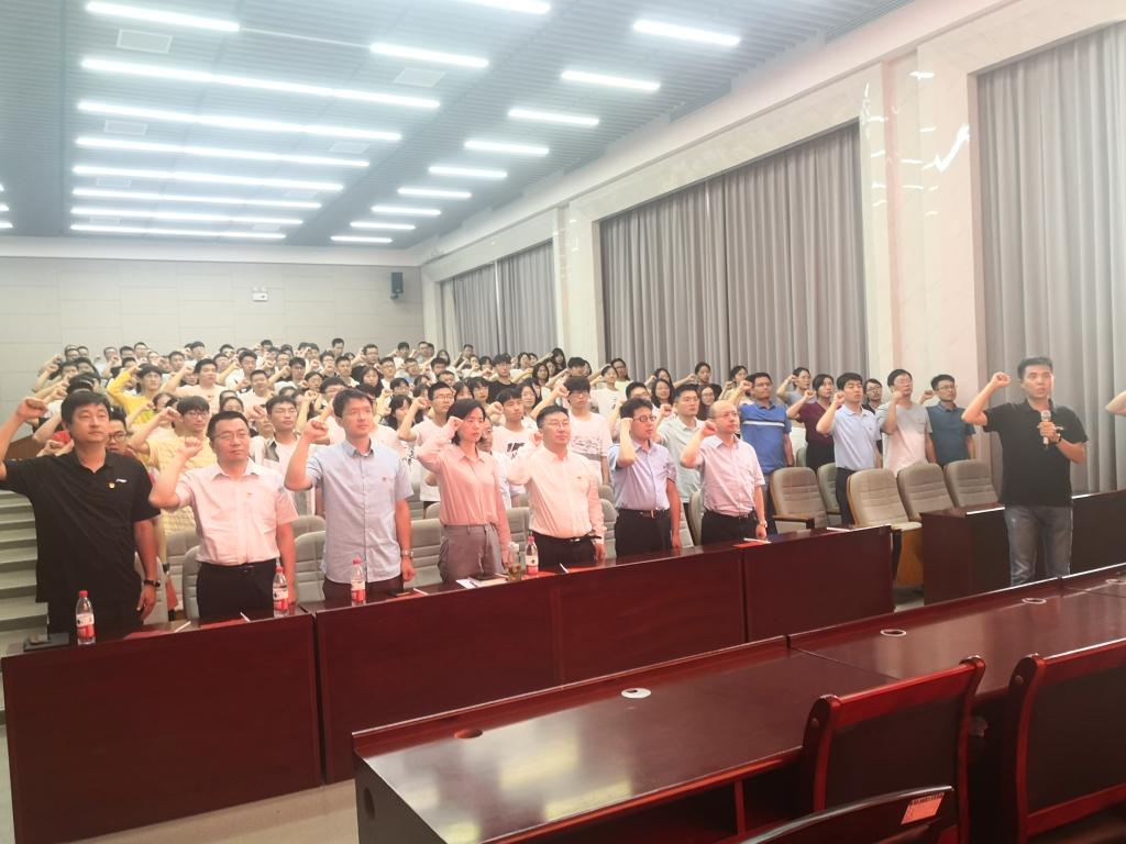 庆祝大会结束后,在学院党委副书记王煜坤带领下,全体党员同志重温了入党誓词。(文/王境婕 肖敏强 图/唐雪晴 审/王煜坤)