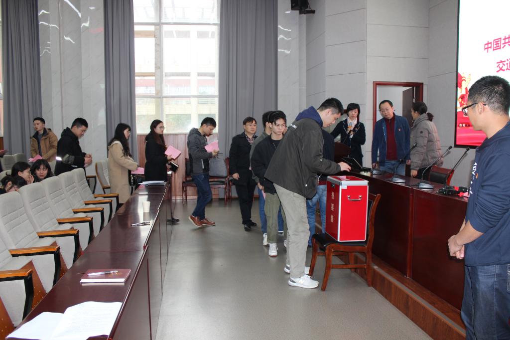 在总监票人李平同志的主持下,大会选举环节由4名监票人和4名计票人共同完成清点人数、检查票箱、分发选票以及报告发放选票情况等工作。选举中,与会党员本着公平、公正的原则,严格按照选举工作要求,遵照代表条件、产生程序和差额选举的要求,进行充分考虑,通过差额选举和无记名投票的方式,认真填写选票,并在监票人员的监督下投出了自己神圣的一票。经过现场计票统票,郑健龙、孔伟红、于华南等15位同志高票当选为出席学校第四次党代会的代表人选。