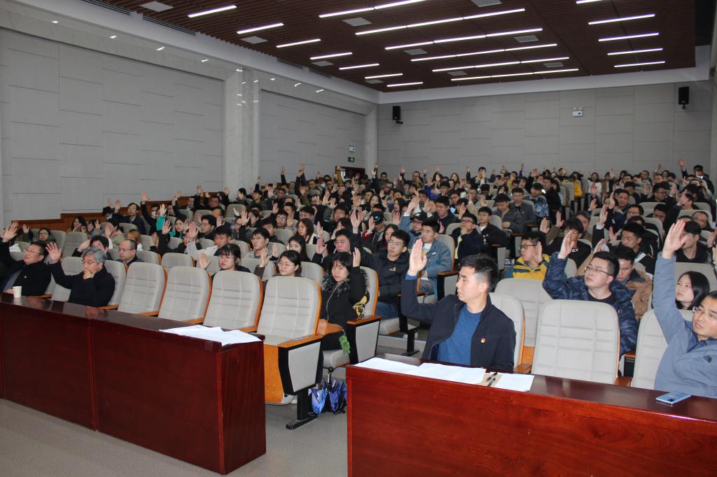 3月9日下午,交通学院在工二B-301、302会议室召开全体党员大会,选举出席学校第四次党代会党员代表。会议由院党委书记孔伟红主持,院士郑健龙教授和院领导王煜坤、张军辉、李平、高英力等党员领导及全院师生党员共333人出席选举大会。