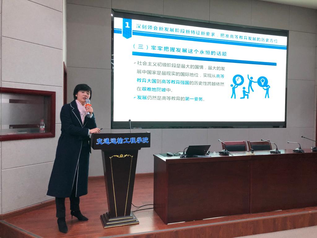 孔伟红向大家解读了付宏渊书记重要讲话精神,付宏渊书记在报告中指出:当前发展仍然是高等教育的第一要务,必须落实立德树人根本任务,始终坚持用党的创新理论培根铸魂,高扬纯粹大学文化,厚植创新文化;必须推进高等教育内涵发展,从优化办学格局、坚持特色发展、提高教育教学质量、深化人才发展体制机制改革、大力发展交叉学科等五个方面下力气调整结构;必须全面贯彻“四为”方针,更好服务区域经济,坚持为创新驱动发展,全面塑造发展新优势服务,加快推进校企合作,更好对接经济主战场。付宏渊书记强调:要深刻领会新发展阶段新特征新要求,把准高等教育发展的历史方位,要贯彻新发展理念,创新高等教育发展,要坚持和加强党对高校的全面领导,为“百强”大学建设培养更多胸怀广、格局大、自律严、人格正的干部队伍。我们要在工作历练中提高政治能力,要在担当作为中提高解决实际问题能力,真抓实干,埋头苦干,向着全面建成“百强”大学目标奋勇前进!