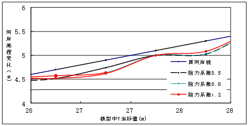 通过以上分析和研究得出:改变阻力系数对河岸的抗冲效果影响并不大