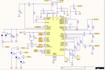主芯片BQ500212A及外围电路如图2-1所示,主要是根据LED_MODE和LOSS_THR外接不同的电阻来选择不同的显示模式状态/转换阈值(具体选择需根据芯片手册),通过COMM+和COMM-来检测负载的不同情况,根据负载不同输出不同的LED的显示电平、PWM信号和snooze/sleep信号。