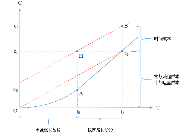6. 因k0t0>c0,故G"(t1)>0,即时间成本C随时间T的增长率呈增长态势。
