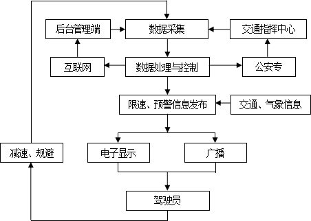 目前,我国智能交通在智慧城市中的建设正逐步推进,出现了若干应用,如城市智能交通综合管理指挥系统、城市智能交通诱导信息服务平台、不停车收费系统、停车诱导系统等等。但在高速公路隧道建设中,智能化应用水平还较低。在安全隐患地段,大多仅仅是根据设计标准,给出固定不变的限速值以及静态的提示信息,不能反映行车条件的变化。近年来,人们逐步注意到这种情况,开始分析隧道口安全事故的致因,试图通过监控行车环境,动态调整限速,为后车驾驶员提供预警。这是有效减少隧道口事故的措施。可以预见的将来,随着车辆的智能化,车辆将可通过自身的安全雷达跟踪前车,检测光线、路面等行车环境,自主采取安全措施。