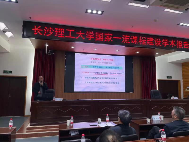 为了加强课程建设,提升课程建设质量,有针对性地开展国家一流课程申报、建设工作,由学校教务处主办、物电学院承办的国家一流课程建设学术报告会于12月29日下午在一办公大楼九会议室召开。报告会由吉林大学教授、教育部物理学类专业教学指导委员会副主任委员张汉壮教授主讲,副校长蒋昌波,各学院教学副院长、校级“金课”建设项目负责人、省级一流课程建设负责人、教师代表共200余人聆听了报告。报告会由教务处副处长蒋菲主持。