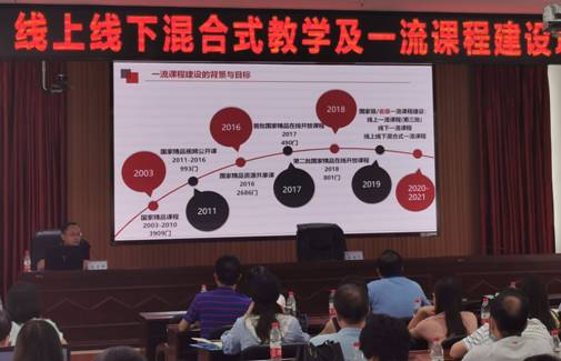 最后,陈瑜处长借这次培训的机会,勉励与会的各位任课教师,要加大精力投入开展线上线下混合式教学及一流课程建设,希望通过本次培训会总结经验、提升能力,争取在国家级、省级一流课程申报建设中取得佳绩!