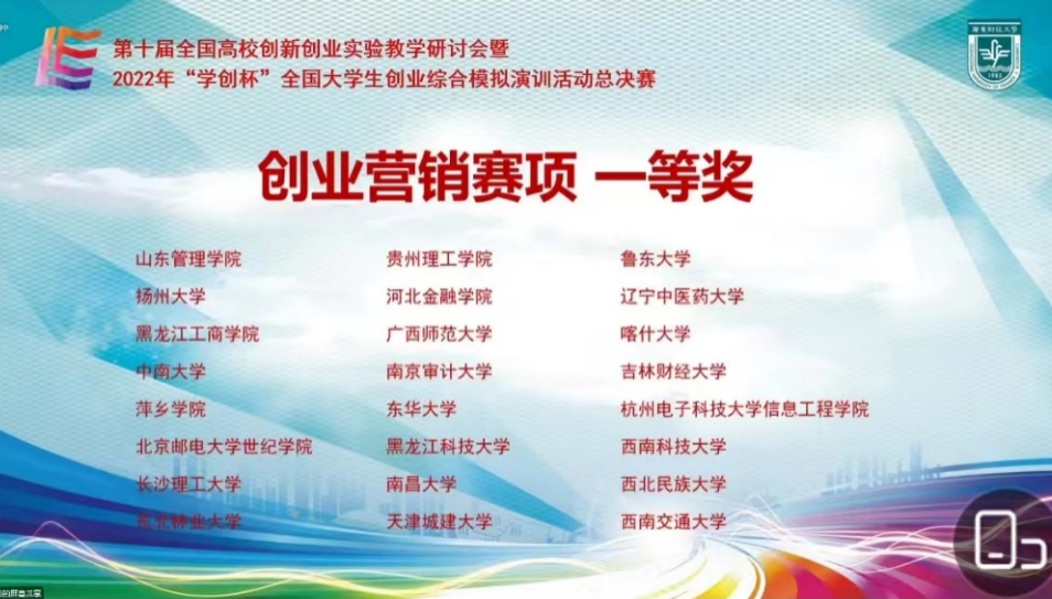 开云官网2支代表队分别参加了主赛道和创业营销专项赛道的竞赛,经过与来自北京航空航天大学、中南大学、中山大学、南开大学等高校参赛选手的经过激烈角逐,开云官网2支代表队分别获得主赛道和创业营销专项赛道一等奖,开创了开云官网在该项赛事的最好成绩。此外我校还获得大赛组委会颁发的“优秀组织奖”。