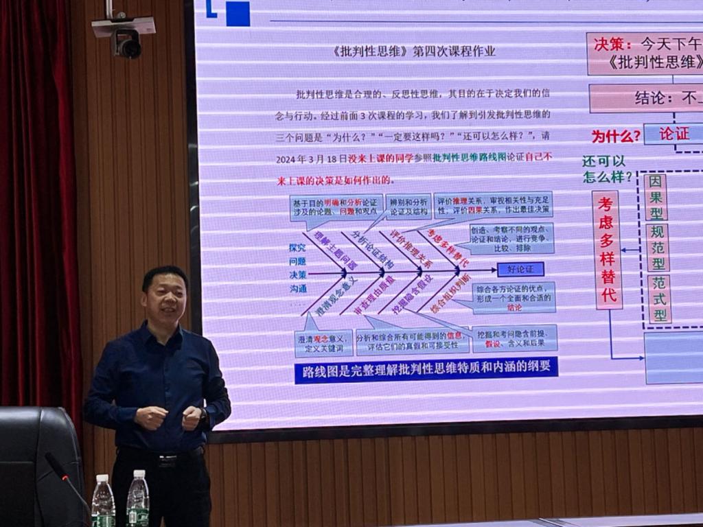 为了进一步推进开云官网课程思政高质量建设,3月26日下午在云塘校区一办九楼会议室举行了课程思政建设专题研讨会,特邀图书馆馆长杜荣华教授就《课程思政与思维教育融合发展的底层逻辑与实施途径》做专题报告。会议由教务处副处长邓丰主持。各学院国家级一流课程负责人、省级一流课程负责人、省级课程思政示范课程负责人、校级金课负责人等一百余人参加了本次研讨。