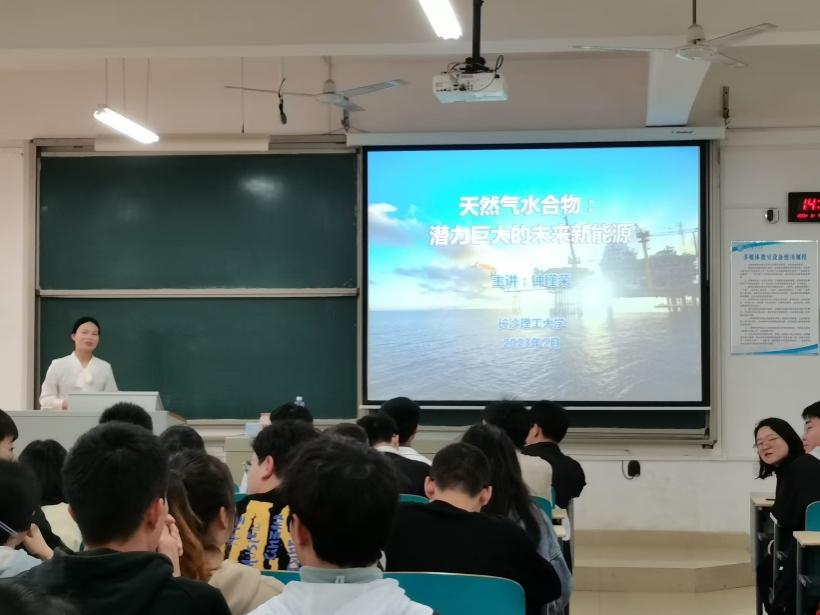 2023年3月7日下午2点,化学化工学院钟瑾荣博士在云文科楼E201开展了题为“天然气水合物——潜力巨大的未来新能源”的通识教育学术讲座报告,2022级学院本科生及其他年级同学70余人聆听了讲座,讲座由学院教务办邬庆老师主持。