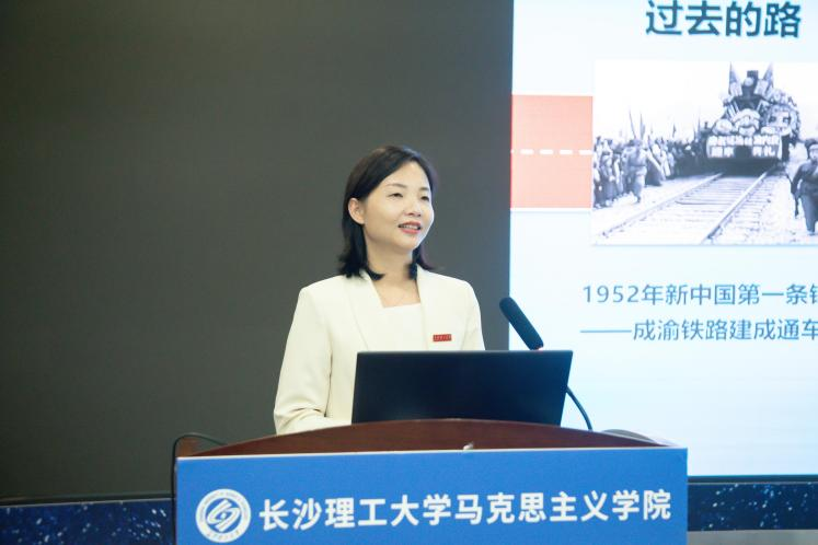 在教学展示环节,教育部首届思想政治理论课教学展示活动概论本科组一等奖获得者、马克思主义学院副院长钟芙蓉带来“一路向新 跑出交通强国加速度”专题教学展示。她从建设交通强国的重大战略需求出发,以详实数据、生动案例深入剖析新质生产力引领下交通运输行业转型升级的发展趋势,呼吁青年人接过全面深化改革的接力棒,做发展新质生产力的主力军。