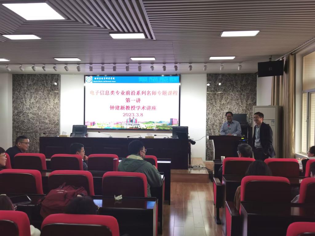 物理与电子科学学院“专业前沿系列名师专题课”于3月8日15点30分在云塘校区理科楼B-413拉开序幕。湘潭大学钟建新教授应邀来开云官网作为课程第一讲的主讲人。学院党委书记张国强、副院长(主持工作)张卫兵、副院长范志强、校督导团团长唐立军教授,与电子系的师生们共计120余人一起聆听了专题课程。专题课由物电学院副院长(主持工作)张卫兵主持。