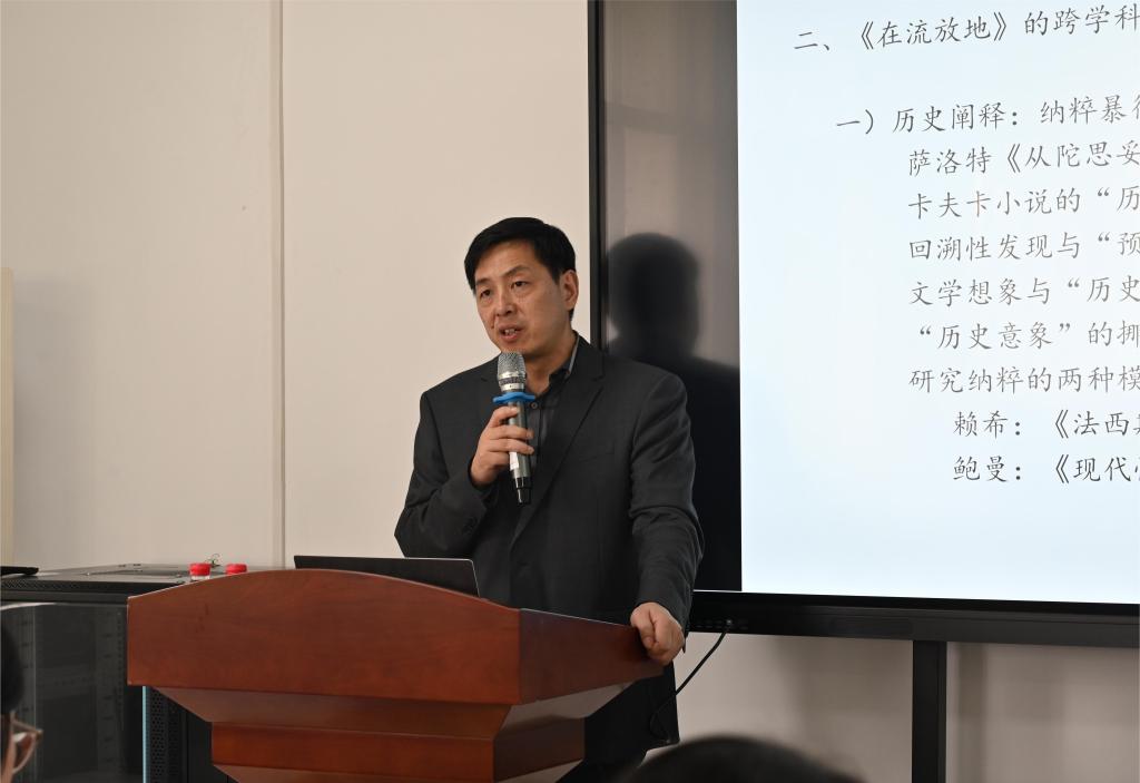 9月24日下午两点半,武汉大学文学院院长、博士生导师涂险峰教授应邀在金盆岭校区9号楼417教室为中文系师生作了一场学术讲座,主题为“世界文学经典的跨学科阐释:以卡夫卡小说《在流放地》为例”。讲座由中文系周子玉副教授主持,中文系部分教师、硕士研究生及部分本科生参加了此次讲座。
