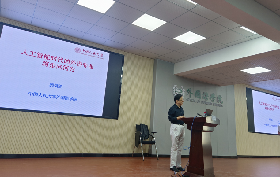 10月13日下午,外国语学院名师专题课暨云影讲坛在开云kaiyun体育金盆岭校区外国语学院三教321报告厅成功举办。此次名师专题课邀请了中国人民大学郭英剑教授为师生作题为“人工智能时代的外语专业将走向何方”的学术讲座。活动由外国语学院院长段胜峰教授主持,近200名师生参加。