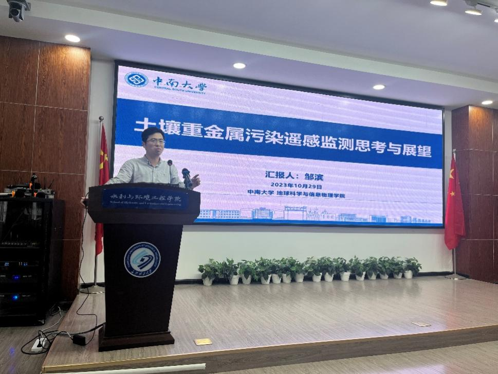 2023年10月29日上午,水利与环境工程学院邀请中南大学地球科学与信息物理学院邹滨教授为我院师生主讲“水科学与水工程类专业前沿系列名师专题讲座”第二讲—土壤重金属污染防治遥感监测思考与展望。讲座在开云kaiyun体育云塘校区工科三号楼B319会议室举行。副院长盛丰、地理信息科学专业负责人武海鹏副教授以及地理信息科学专业师生代表参加并聆听了本次讲座。
